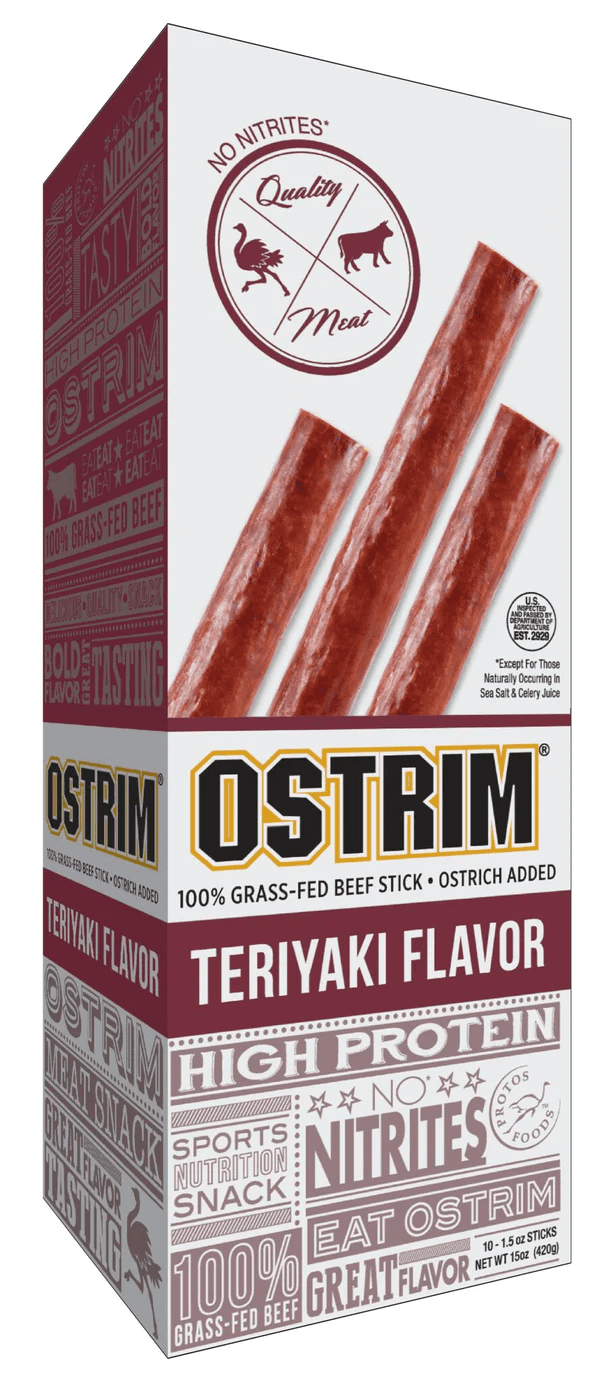 OSTRIM is the first sports nutrition, low fat, high-protein meat stick made from a combination of Ostrich, a highly nutritious red meat, and the leanest beef available. The 42 gram (1.5 oz.) OSTRIM Meat Stick contains essential and non-essential amino acids, has high protein (14 grams), is 96% fat free (less than 1.5 grams) with zero carbs (under 3 grams) and less than 1 gram of sugar.