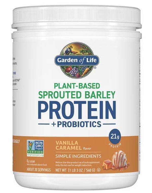 > Garden of Life - Plant Based Sprouted Barley Protein + Probiotics 20 Servings Vanilla Caramel Flavor