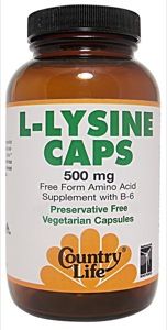Country Life L-Lysine 500 Mg W/B6 250 Vcaps