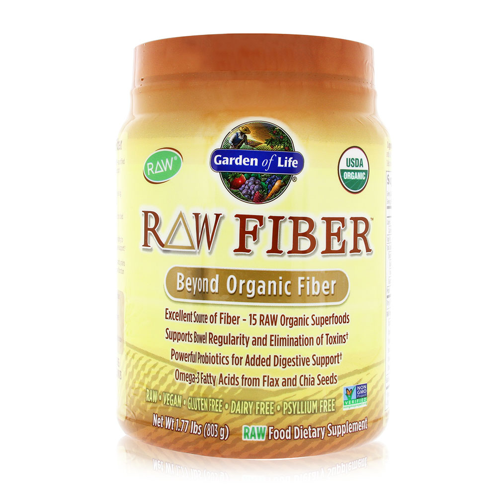 Experience the digestive power of organic superfoods and live probiotics with Garden of Life RAW Fiber a certified organic, RAW, vegan daily fiber formula with ingredients specifically selected for their exceptional ability to support digestive health and function. A high-fiber diet provides numerous health benefits, but getting enough dietary fiber through diet alone can be a big challenge. RAW Fiber is an excellent source of fiber as well as omega-3 fatty acids from flax and chia seed. RAW Fiber features a soothing and nourishing blend of both soluble and insoluble fiber with no harsh fibers such as psyllium, which can be punishing to sensitive colons. RAW Fiber benefits go beyond typical dietary fiber supplements, supporting digestive and bowel health by helping to maintain a healthy intestinal microbial balance with powerful, clinically studied probiotics for additional digestive support. Go Beyond Organic with RAW Fiber with 15 RAW, organic superfoods, including sprouted seeds, grains and legumes ingredients specifically chosen for their exceptional ability to support and maintain optimal bowel function and overall health.