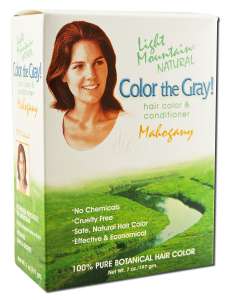 Light Mountain Natural Hair Color: There is a danger of commercial chemical hair dyes. The National Cancer Institute estimates that 20% of the non-Hodgkinst lymphoma (the cancer that killed Jackie Kennedy-Onassis) is linked to the use of such dyes. Other cancers include bladder, breast cancer and leukemia have been linked to those products. Light Mountain Natural hair colors are pure botanical products and do not contain any of the chemicals linked to the cancer risk. They are not only safe, they provide great color and body to your hair! They come with detailed instructions, hat, gloves and a 100% Money Back Guarantee (not to exceed the Manufacturer Suggested Retail Price. Shipping and handling not included).