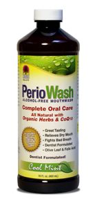 PerioWashª is a powerful alcohol-free oral rinse and mouthwash that moistens tissue, freshens breath for hours and encourages periodontal health. This advanced mouthwash contains organic and responsibly wildcrafted herbs including Echinacea, Green Tea and Olive Leaf, ingredients well-known for promoting healthy gums. Essential oils such as Peppermint, Clove, Oregano and Thyme coupled with the patented extract of Phytoplenolin¬, deliver exceptional long-lasting results.