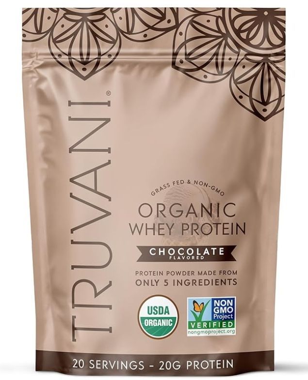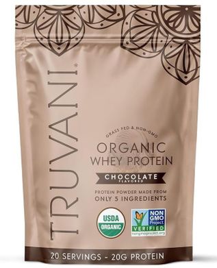 > Truvani Grass Fed Organic Whey Protein 20 Servings Chocolate Flavor